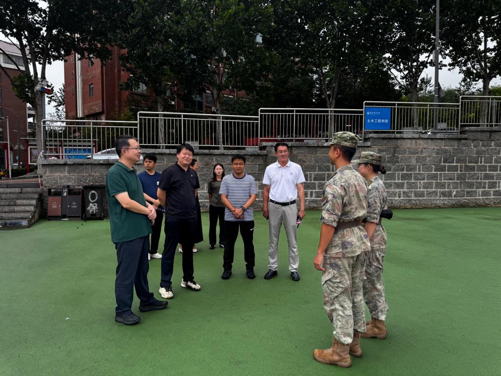 温情慰问关怀浸润心田。新生军训期间,学院领导心系训练场上的学子们。学院党委书记王乐生、院长侯东帅等领导班子成员一行来到军训场地,亲切慰问承训教官及全体参训新生。领导们细致观察新生们的训练情况,对同学们展现出的饱满精神面貌、顽强意志品质和取得的训练成果给予了高度赞扬。他们与教官们亲切交流,感谢其严格指导和辛勤付出。院领导们叮嘱同学们要科学训练,注意劳逸结合,做好防暑降温,鼓励大家要珍惜军训这段宝贵经历,磨练意志,锤炼作风,将训练场上养成的坚韧不拔、团结协作的精神带到今后的学习和生活中去。