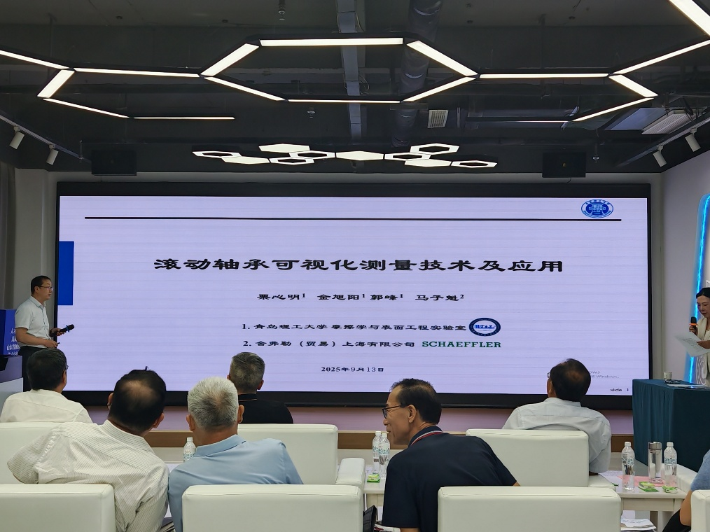 我校机械与汽车工程学院栗心明教授、江京亮副教授及金旭阳老师应邀参会。会上,栗心明受大会组委会邀请作了题为《滚动轴承的可视化测量技术及应用》的专题学术报告。报告从滚动轴承在高端装备、轨道交通、风力发电、精密机床等关键领域中的应用切入,深入剖析了润滑成膜机制及轴承组件摩擦学问题等核心科学与工程难题,系统介绍了可视化测量技术的发展历程、测试原理与关键技术难点,引发了与会企业的广泛关注。