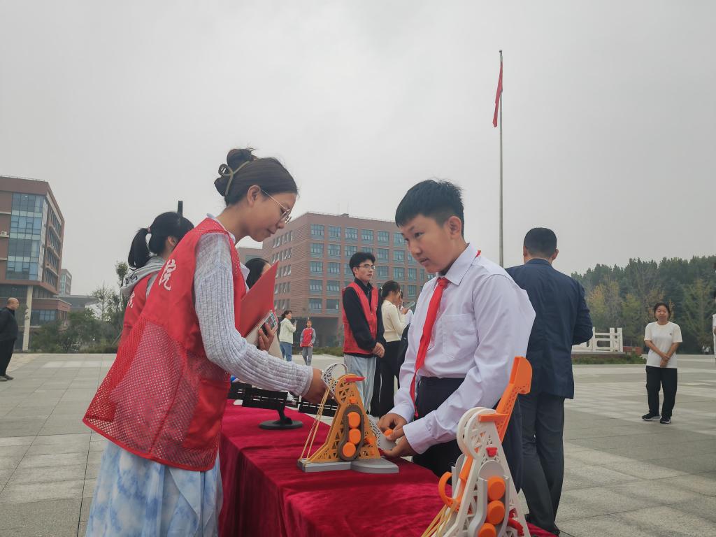 升旗仪式结束后,师生们共同参观了“智创星河”科普科技展览。“这是我们中国的第一个‘太空之家’,它在太空中飞行,宇航员叔叔阿姨就在里面生活和做科学实验,就像一个会飞的大房子。”这是一座连接香港、珠海和澳门的超级大桥,它非常长,也非常坚固,是世界上最长的跨海大桥,它让三地的人们来往更方便了。”……大学生志愿者们化身“科普小老师”,一边讲解,一边操作模型,还不时与小学生互动提问,鼓励他们亲手触摸、仔细观察。衡山路小学的小朋友们围着模型好奇提问,眼神里满是对科学知识的渴望。