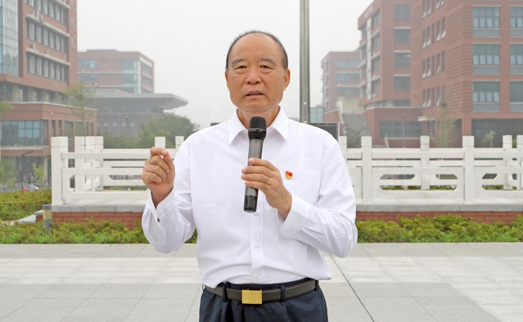 “同学们,和平年代也有‘上甘岭’,希望你们这代人,用光刻机、用发动机、用原创的源代码,把失去的阵地一块块夺回来。” 原北部战区海军某训练基地司令员、青岛雷锋精神研究会发起人王发令以“武器装备变迁”为核心,对比了抗战时期的简陋装备与如今的航母、战机,勾勒出从“落后挨打”到“国之重器”的发展脉络,带领1000余名师生共同追忆革命历史、感悟科技力量、赓续红色血脉。物理242班的王琪琪感慨道:“王发令爷爷结合自身军旅生涯,讲述了革命先烈为民族独立和人民解放事业英勇奋斗的光辉事迹,让我深感今天的幸福生活来之不易,以后我要努力学习科学知识,用科技的智慧为祖国发展贡献力量。”
