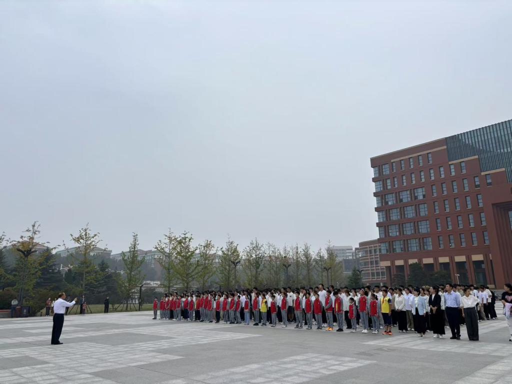 在中华人民共和国成立76周年与第12个烈士纪念日到来之际,9月29日,青岛理工大学联合衡山路小学举行升国旗仪式暨“国旗下的科技强国课”主题教育活动。青岛理工大学理学院、衡山路小学师生代表共计1000余人参加。