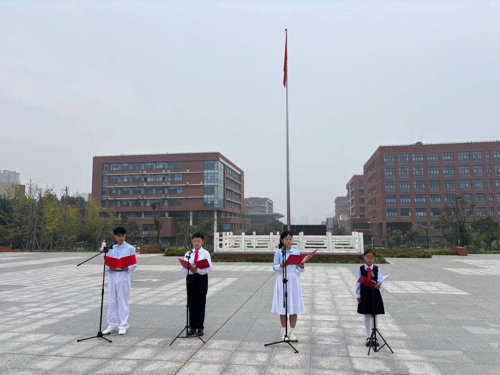 随后,理学院、衡山路小学四位学生代表共同朗诵《星火相传•星河筑梦》,用饱含深情的语言展现了青春少年以科技为桨、梦想为帆,勇攀科学高峰、共赴民族复兴的星辰大海的决心和信心。