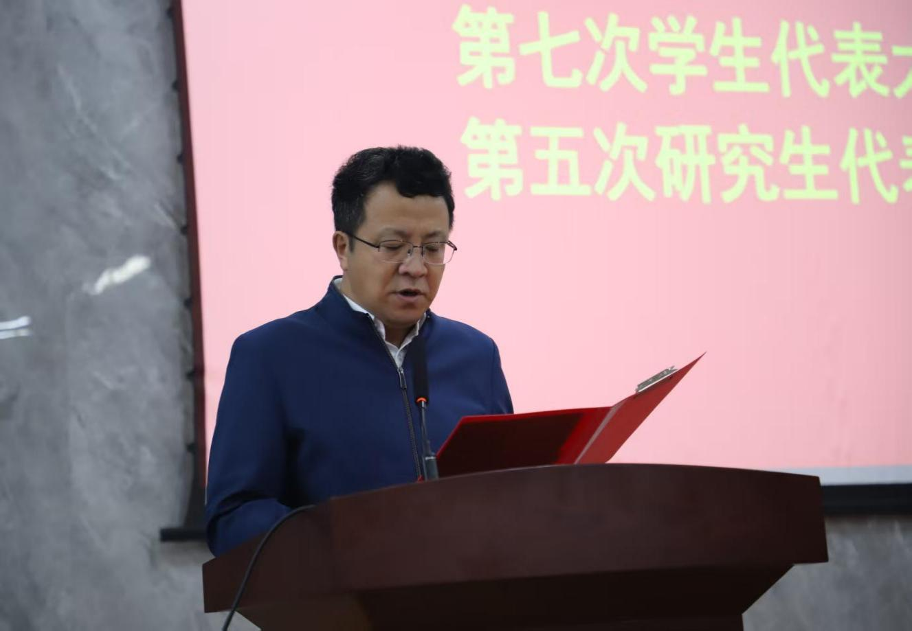 董虎向大会发表讲话。他在讲话中强调,学生会、研究生会组织要立足新时代使命,聚焦三个关键方向:一是筑牢理想信念根基,将个人成长融入国家发展和学院建设;二是强化综合素质培养,通过学习和实践锤炼过硬本领;三是激发创新活力,以开拓精神推动学生会工作提质增效。他号召全体青年学子勇担时代责任,为学院高质量发展注入青春动能。