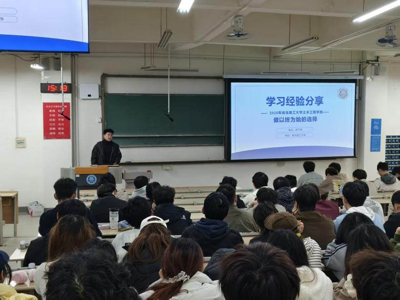 吴天一同学结合保研至中国海洋大学的经历,重点分享了材料科学与工程专业的学习方法与科研准备。他表示:“即使在两年之前,我也未曾预料到自己能够保研。在大学这个充满可能性的环境中,关键在于积极行动。”他鼓励同学们立足当下,努力提高学习成绩,并尽早参与实验与课题研究,为未来发展奠定基础。
