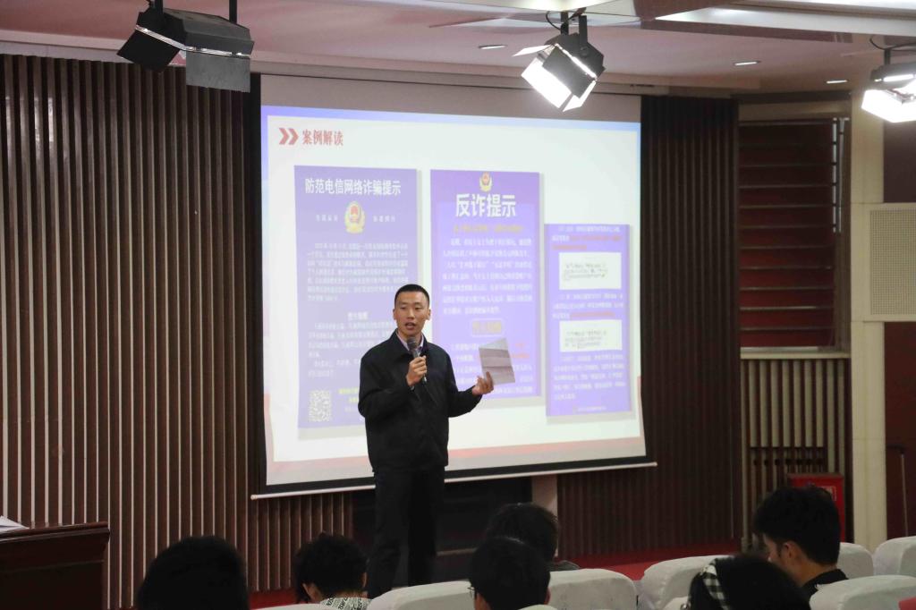 高鹏磊首先通过一系列真实案例引入主题。他详细讲解了一起高校学生因法律意识淡薄,出借银行卡协助“过账”而卷入诈骗案件的典型案例。随后,高老师介绍了目前大学生中多发的诈骗类型,强调要远离不良网络行为,遇到威胁应及时保存证据并报警,坚决不转账,呼吁大家在网络世界中始终保持警惕。同学们纷纷表示,讲座内容贴近现实,案例生动、警示性强,让大家对网络诈骗的形式和危害有了更清晰的认识,也掌握了实用的防范方法。