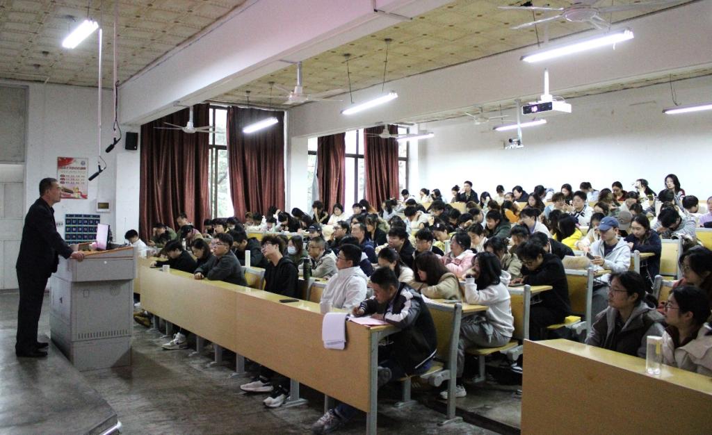 随后,傅承德同志以“国家需要你”为主题,结合自身的从军经历,将历史纵深与时代需求、党的领导与青年担当紧密结合,为在场师生带来了一场深刻而生动的理想信念与使命担当思政课。他结合党史、军史,解读中国共产党在不断斗争中发展壮大的历程,及我军“召即来、来能战、战必胜”的优良传统与独特优势,立足“百年未有之大变局”的时代背景,指出新时代青年学子生逢其时、重任在肩。他勉励师生们要通过学习马克思主义经典著作树立正确的世界观、人生观、价值观,将个人理想融入国家发展大局,深刻认识自身肩负的历史使命,以书为梯、以志为帆,在国家急需领域主动探索、大胆创新、积极创业,将专业学习与祖国建设需要紧密结合,努力成为堪当民族复兴大任的栋梁之材。