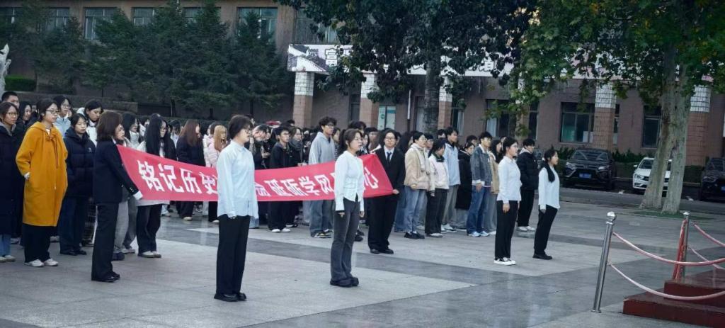 年、厚植青年学生爱国主义情怀、涵养优良学风,11月3日,人文与外国语学院在市北校区举行“铭记历史担使命,砥砺学风践初心”主题升国旗仪式。辅导员刘文帅及2025级新生共同参与,仪式由社工252班孙何允泽同学主持。