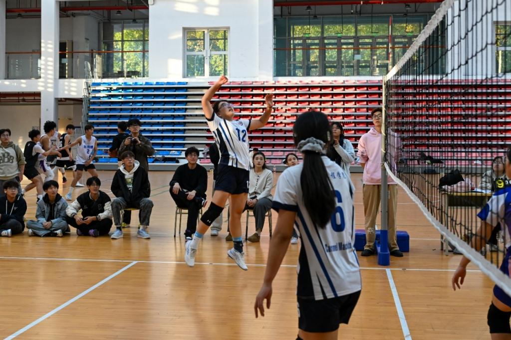 小组赛阶段,土木男、女排就遇到了多支实力强劲的对手。面对强敌,队员们迅速进入状态,发球环节精准刁钻,平快突击撕开防线,高吊落点牵制对手;一传环节稳扎稳打,即便面对大力扣球也能凭借默契跑动稳稳接起,为进攻筑牢基础。主攻手高高跃起,一记记重扣直击对方场地,引来场边阵阵欢呼;拦网队员则凭借敏锐预判与迅捷起跳,多次成功阻拦对手攻势,守住团队防线。比分胶着时,队员们相互呐喊鼓劲,不骄不躁、稳扎稳打,每一分的争夺都凝聚着团队的智慧与汗水,用实际行动诠释着“不抛弃、不放弃”的竞技精神。