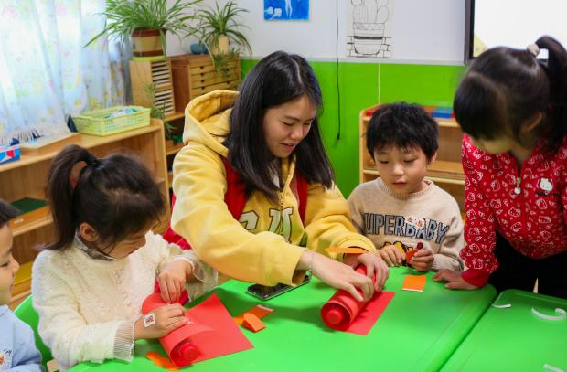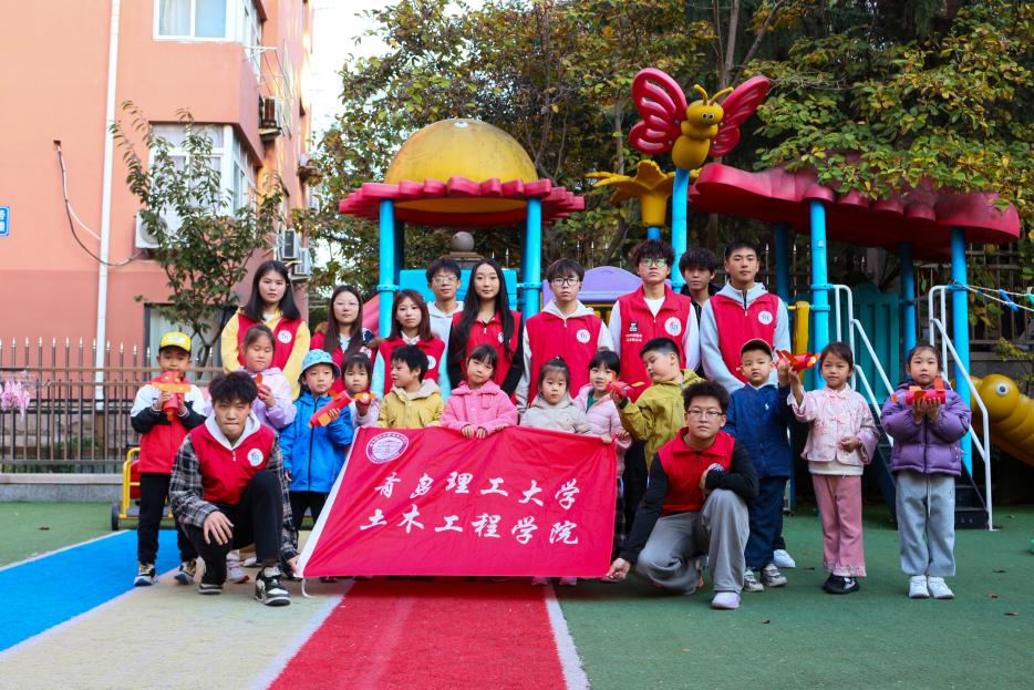 “我和我的祖国,一刻也不能分割......”11月5日,土木工程学院走进青岛市市北区爱心幼儿园。教室里,文艺发展中心的同学们手持小红旗,深情演唱《我和我的祖国》。孩子们热情跟唱,稚嫩的童声与志愿者的歌声交织在一起,在教室里汇成了最动人的旋律,让爱国情怀烙印在孩子们心中。“小朋友们,你们知道每年的11月11日是什么日子吗?”材科252班孙梦缘提问道,孩子们纷纷举手、踊跃猜测,“我知道!1949年11月11日是中国人民解放军空军正式成立的日子。”孙梦缘还结合孩子们熟悉的生活场景,讲述了空军战士守护蓝天、保卫国家的英勇故事,让孩子们对空军职业有了直观认知,在心中悄悄升起对军人的崇敬与爱戴,也让爱国的种子在潜移默化中深深扎根,这不仅丰富了幼儿园的课外生活,也让土木学子在志愿服务中践行了社会责任。