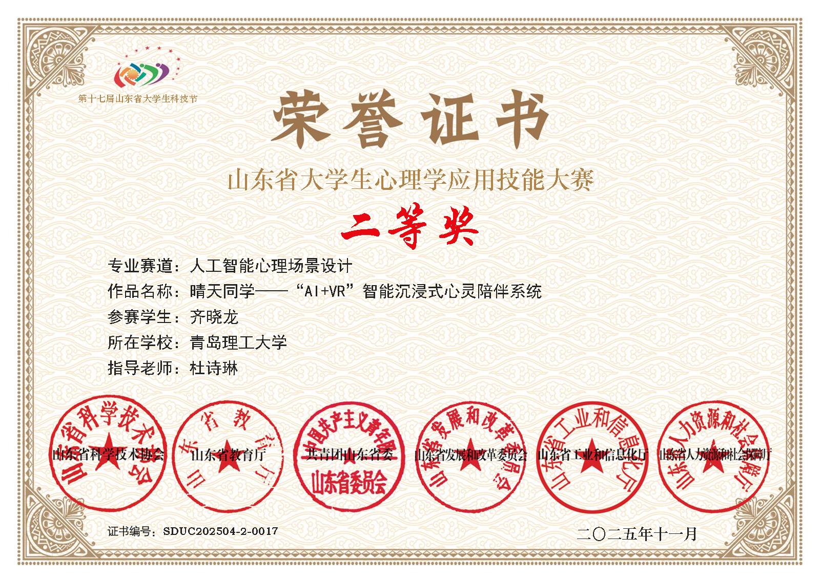 近日,由山东省科学技术协会、山东省教育厅、共青团山东省委等六部门联合主办的第十七届山东省大学生科技节大学生心理学应用技能大赛决赛圆满落幕。青岛理工大学土木工程学院学子凭借扎实的专业素养、创新的实践能力和出色的临场表现,在全省近140所高校、13000余名参赛选手的激烈角逐中脱颖而出,一举斩获9项省级荣誉,包含二等奖2项,三等奖7项,充分展现了学院在心理健康教育实践中的显著成效。