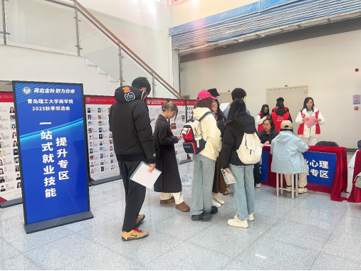 11月12日下午,商学院“商启金秋,职为你来”2025年秋季双选会在黄岛校区中央院系区C1-4一楼大厅举办。中国人保、北京大地泰华会计师事务所、青岛鼎世国际货运代理有限公司等省内外近50家优质企业和1000余名学生参加了招聘会。本次双选会以“招聘+服务+赋能”的创新模式,全面助力毕业生求职就业。