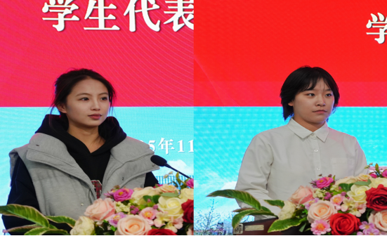 网新232班董爱、网新241班金曼秋分别作为助学金与奖学金获奖代表发言。她们表达了对学校、学院以及社会各界的由衷感谢,并表示将以此为契机,不负众望,以更坚定的信念投入专业学习与社会实践,努力成长为有理想、敢担当、能吃苦、肯奋斗的时代新人。