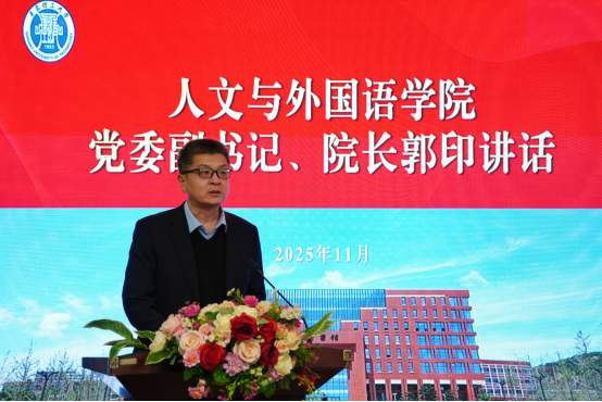 人文与外国语学院院长郭印在讲话中向获奖学生表示祝贺,并向学校各相关职能部门,尤其是社会各界爱心人士的大力支持表达诚挚谢意。他回顾了“青理清风”基金设立的背景与意义,并对全院学生提出四点希望:一要坚定理想信念,筑牢精神根基,做志存高远的新时代青年;二要勤奋学习钻研,锤炼过硬本领,做勤学笃行的新时代青年;三要常怀感恩之心,传递爱心善举,做品德高尚的新时代青年;四要发挥模范作用,引领优良风尚,做担当有为的新时代青年。他鼓励大家将荣誉转化为前进动力,以“清风”之志书写无愧于时代的青春答卷。