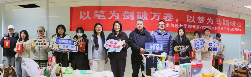 长期以来,艺术与设计学院始终坚持“立德树人”根本任务,将考研帮扶作为学风建设的重要抓手,以精准化服务赋能学生成长成才,用温情化关怀筑牢育人阵地。此次慰问活动不仅为冲刺阶段的考研学生注入了温暖动力,更彰显了学院“围绕学生、关照学生、服务学生”的育人初心。未来,学院将持续深化“考研助航工程”成效,不断完善考研支持举措,助力更多学生圆梦理想院校,为人才培养质量提升与学风建设筑牢根基。