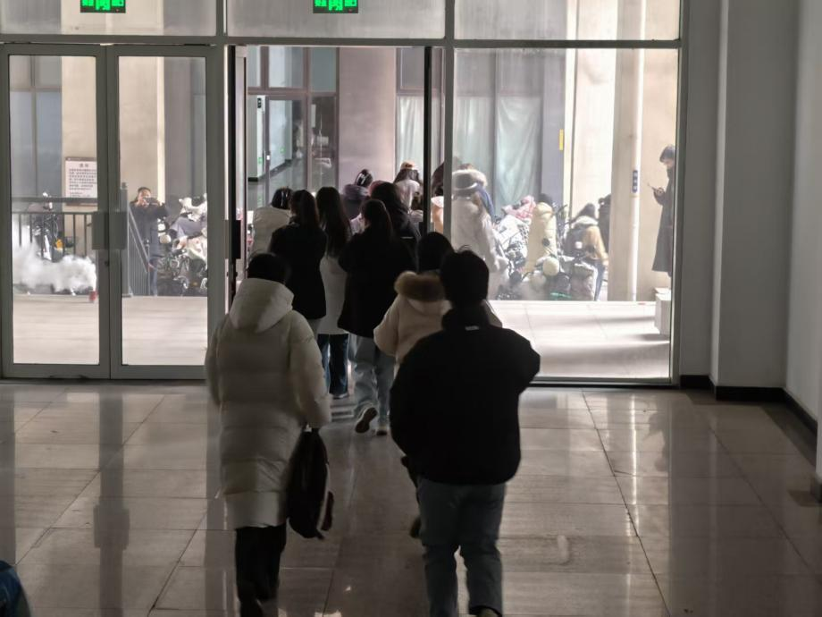 在消防安全知识讲解完毕后,总指挥发出指令,逃生演练正式开始后,烟雾模拟组的人员在楼道释放烟雾,迅速营造火情环境。在场工作人员第一时间组织学生按照既定疏散路线有序撤离。楼梯口疏导人员持续引导同学们保持低姿、捂住口鼻,不推搡、不停留,确保疏散过程平稳安全。各楼层工作组在疏散结束后对实验室进行逐一检查,确认无遗漏人员。整个逃生过程紧张而有序,学生们行动迅速,达到了预期训练效果。