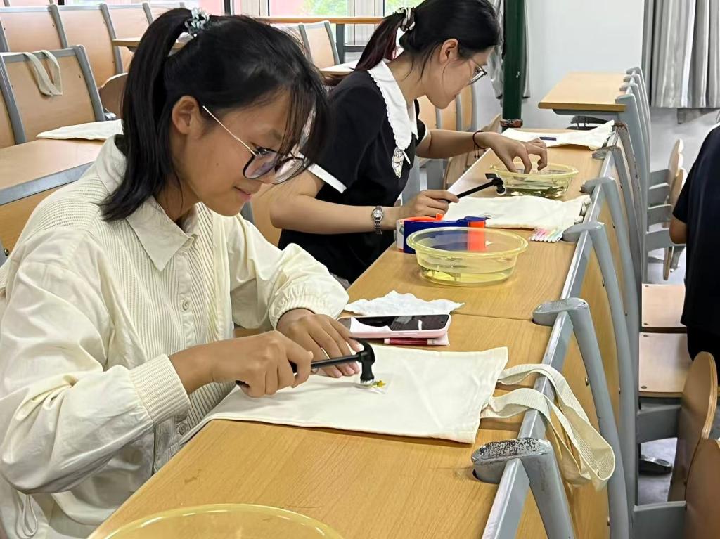 在“拓叶寄情绘相思 非遗文化润心田”的活动现场,同学们精心挑选自己喜爱的树叶,小心翼翼地在其叶脉清晰的一面涂上心仪的颜色,将叶片仔细地放置在帆布包上,用手或小锤均匀按压。当叶片被轻轻揭开,一片片秋叶的轮廓与细腻的脉络便完美地复刻在织物之上,形成一幅幅独一无二的自然画作。活动以植物拓印这一非遗技艺为载体,引导同学们在拾取落叶、涂染锤拓的过程中,感受自然之美与传统之韵,不仅舒缓了学业压力,更在艺术创作中实现了心灵的疗愈与沉淀。此外,学院紧扣学生成长关键节点需求,举办“停止精神内耗,赋能内在成长”心理辅导讲座、“解锁内心世界 健心护航成长”OH卡牌心理探索等特色活动,助力学生在坦诚分享与思维碰撞中,疏解学业压力、拉近心灵距离,在共鸣中收获前行的力量。