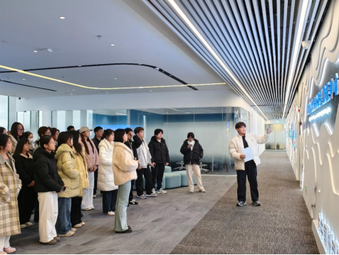 活动伊始,师生集体参观了外贸赋能中心的现代化展厅,通过实地观摩与专业讲解,深入了解企业运营模式、文化理念及行业服务功能。