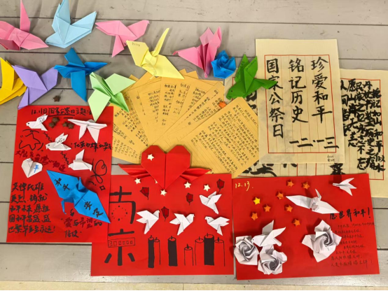 赤心承志,溯国殇担使命。12月11日,学院以深耕校内实践、凝聚和平力量为导向,肃穆启幕国家公祭日主题活动。同学们以多样实践形式寄怀明志:笔下书信,字字泣血诉尽对遇难同胞的追思;指间纸鸽,羽羽含情托起对和平安宁的期盼;卷中寄语,笔笔千钧刻下对以史为鉴的誓言。此次活动进一步强化了学生的历史使命感与维护和平的责任意识。