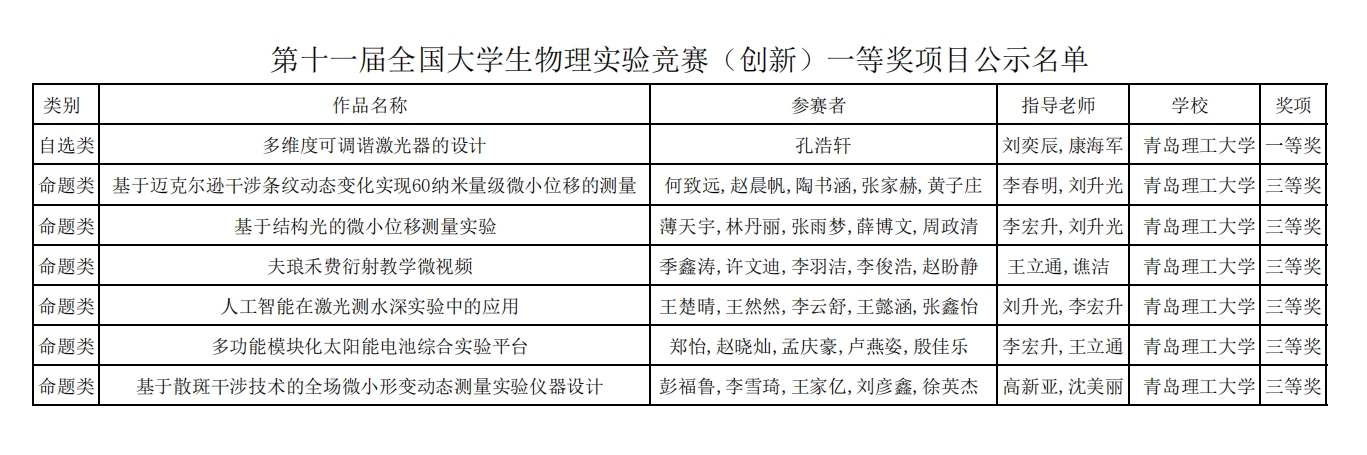 近日,第十一届全国大学生物理实验竞赛(创新)决赛在中南大学举行。我校共选派7支队伍参赛,分别取得国家一等奖1项、国家三等奖6项的优异成绩,同时获评“优秀组织奖”。这一成绩不仅刷新了我校在该项赛事中的历史记录,也充分彰显了我校在物理实验教学和人才培养方面的显著成效。