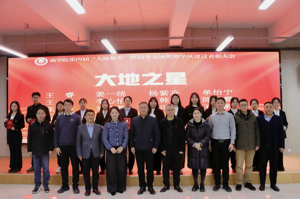 大地慈善奖助学金是山东大地公益慈善基金会在商学院设立的社会奖助学金,已连续四年向学院共捐赠40万元,旨在用于资助学习优秀和家庭经济困难的商院学子。此次表彰大会不仅是对爱心善举的致谢、对优良学风的弘扬,更是对学院育人工作有力动员。未来,学院将继续深化三全育人格局,引导广大学子坚定理想信念、锤炼扎实本领、培养更多德才兼备、担当民族复兴大任的时代新人作出更大贡献。