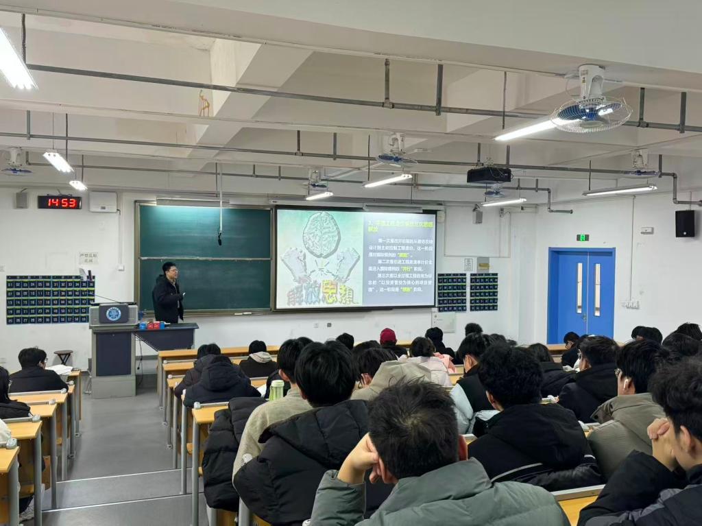 为深入学习贯彻党的二十届四中全会精神和习近平总书记关于科技创新的重要论述,推动党建工作与专业发展深度融合,助力培养适应建筑行业智能化转型的高素质工程造价人才,12月16日,管理工程学院本科生第一党支部与工程造价党支部联合开展党建共建活动。工程造价党支部教师党员王翔应邀作“面向未来的智能工程造价人才场景创新”专题讲座。本次活动由本科生第一党支部书记李佳妮主持,本科生第一党支部学生党员、工程造价党支部教师党员及2023级工程造价专业全体同学共同参加。