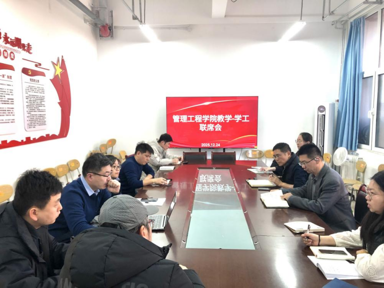 为深化协同育人机制,全面提升人才培养质量,12月24日,管理工程学院在学院楼311召开了教学-学工联席会议。副院长万鹏、各系主任及全体辅导员共同参会,会议由学院党委副书记、副院长柳志广主持。