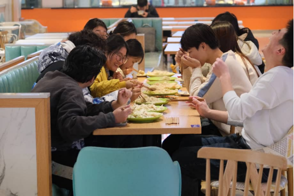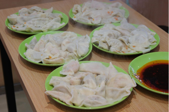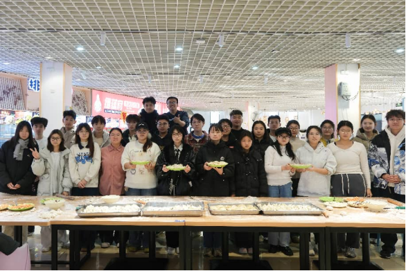 同学们分工明确、配合默契,有的揉面、擀皮,动作娴熟利落;有的包馅、捏形,手法各有千秋。月牙形、金鱼形、元宝形等各式各样的饺子摆满了托盘,承载着材子们对节日的祝福与对生活的热爱。一盘盘热气腾腾的饺子端上桌,咬开是鲜香的馅料,咽下是冬日的温暖。这是独属于土木学子的浪漫,既能执笔测算工程的蓝图,也能亲手包裹生活的烟火。