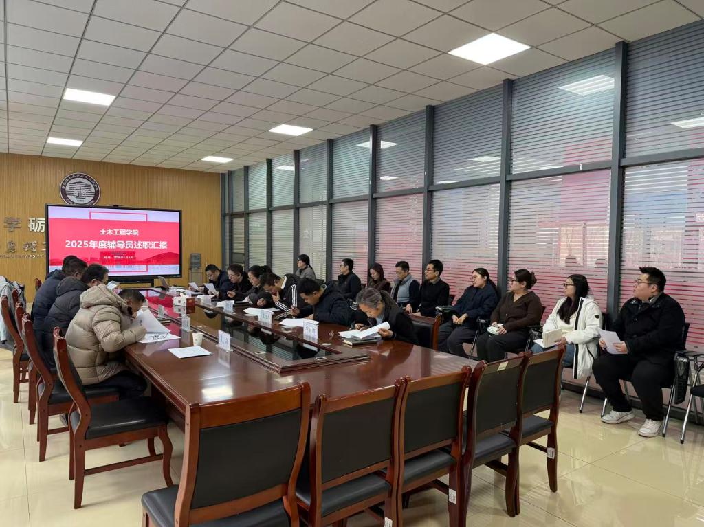 为进一步加强辅导员队伍建设,全面总结2025年度学生工作成效,1月6日下午,土木工程学院在土木楼206召开2025年度辅导员工作述职评议。学院领导班子成员、学院办公室、教学科研办公室、教师代表、班主任代表等组成考核工作小组参与评议,学生工作处副处长王栋栋到场观摩指导。会议由学院党委副书记、副院长王鹏飞主持。