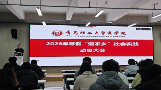 为深入学习贯彻习近平新时代中国特色社会主义思想,全面落实党的二十届四中全会精神,引导青年学生在实践中“受教育、长才干、作贡献”,近日,商学院在401报告厅举行2026年寒假“返家乡”社会实践动员大会。学院团委书记兼学工办主任孙楚、2023级辅导员于淼及2024级、2025级全体团学骨干参会。