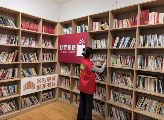 文化服务,书香传递爱心力量。财管251刘亚男报名参与社区“心灵驿站”图书馆志愿服务,承担图书归位、读者引导与图书消毒等工作。她发现许多小读者对雷锋故事感兴趣,便利用馆内多媒体设备播放雷锋主题动画片,引导孩子们阅读相关绘本。她还主动为老年人快速定位养生类书籍,耐心讲解分类方法,让书香与爱心一同延伸。在服务中她体会到“雷锋精神并非宏大叙事,是每一次耐心指引、每一个暖心的微笑”。