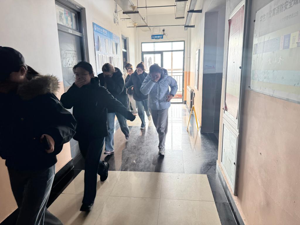 15时,消防警报响起,演练正式开始。工作人员在一楼释放烟雾弹,模拟真实火场环境。楼管人员迅速打开逃生通道,确保通道畅通。各楼层引导老师即刻就位,指挥学生有序撤离。各楼层学生同时行动,严格按照要求排成两路纵队,沿楼梯两侧低头弯腰撤离。大家用湿毛巾捂住口鼻,一手扶墙或扶手,前后保持安全距离,慢跑前行。整个撤离过程快速有序,全体学生在数分钟内安全集结完毕,各楼层清点人数并逐级上报,无一人遗漏。