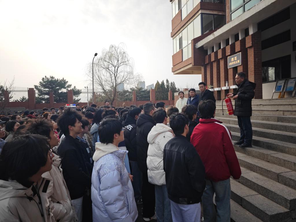 活动开始前,李威详细讲解演练流程与注意事项,并有工作人员现场演示灭火器“提、拔、握、压”操作方法,帮助师生掌握初期火灾扑救技能。
