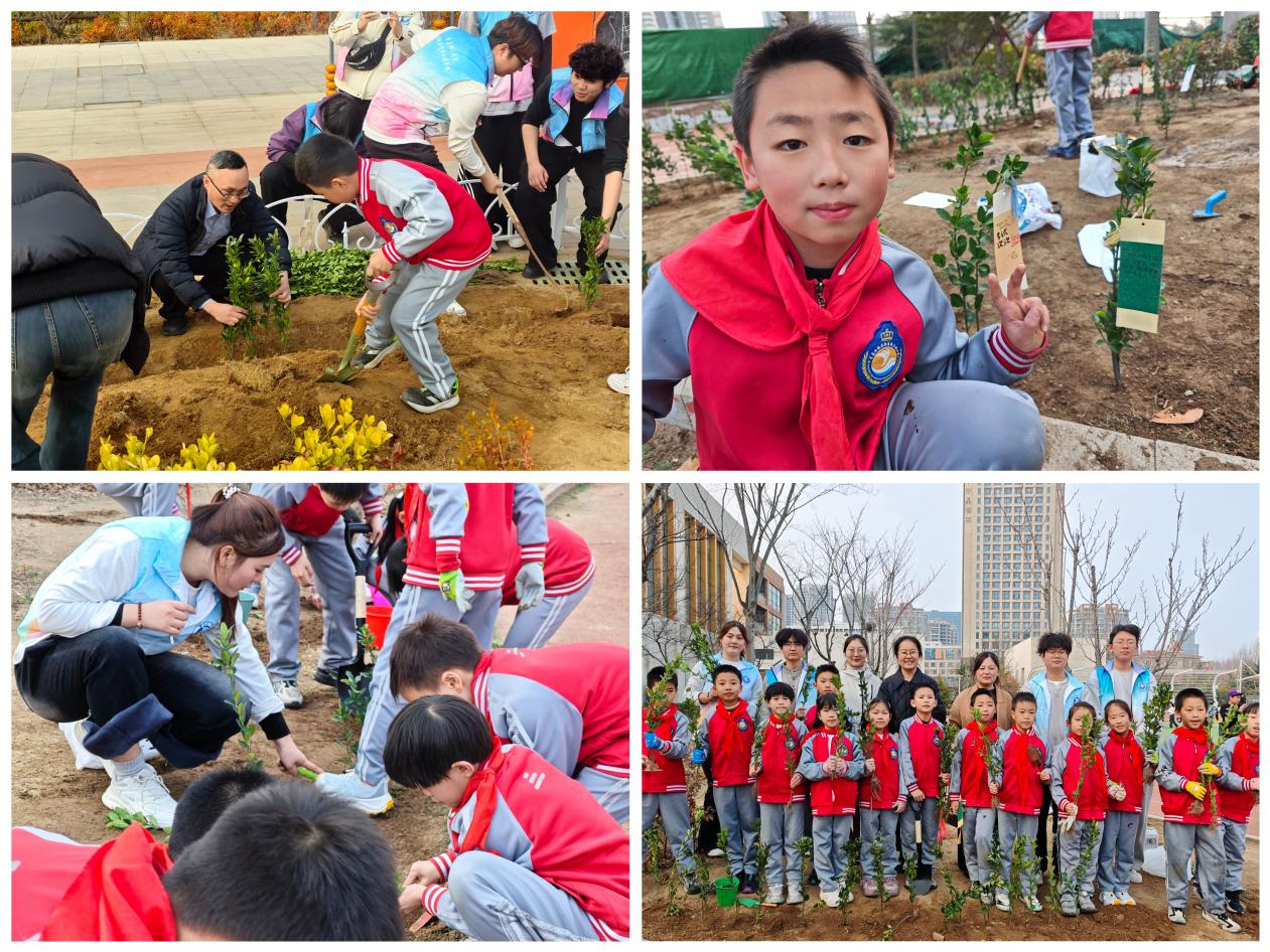 “这堂实践课太有意思了!大哥哥告诉我,冬青树就像小卫士,能保护我们的环境,我以后每天都要来看我的小树朋友!”三年级(9)班的耿玉东小朋友一边小心翼翼地为自己栽种的冬青树苗浇水,一边兴奋地说道。此次活动以高校志愿者牵手小学生的形式,通过科普互动、创意手工、实地种植等多维环节,让孩子们在实践体验中感悟植绿护绿的重要意义,在携手协作中播撒绿色希望,推动生态环保教育走进校园、深植童心。衡山路小学德育主任程千业表示:“大学生志愿者带来的不仅是植树技能,更用青春的热情感染了孩子们。”