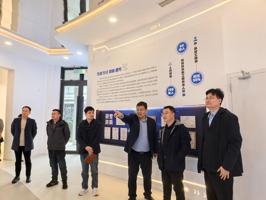 调研团队实地参观了青岛综合立体交通产业示范园展厅,近距离感受交通科学研究院在智慧交通、交通大数据整合等领域的前沿技术与实践案例,并就智慧交通、交通基础设施质量检测、交通堵点破解、公路隧道智能管控、绿色交通发展等方面的技术研发与应用情况进行详细了解。
