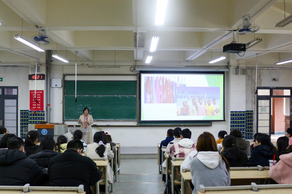 会上,莫正波围绕本次成图大赛进行了系统介绍和详细讲解。她结合多年教学与赛事指导经验,全面解读了大赛的比赛规则、赛事内容和主要考察方向,就赛题特点、组队要求、备赛安排、设备要求以及创新作品设计等关键问题进行了细致说明。她指出该赛事作为教育部认可的高水平竞赛,是检验专业学习成果、提升实践能力的重要平台。通过参与竞赛,能够有效推动大家从课堂理论学习走向软件实操应用,实现从基础知识点到高阶专业能力的逐步提升。