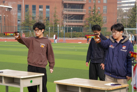 本次选拔赛紧扣校级竞赛规程,设置男生接力赛、女生接力赛两大核心项目,每个项目均包含战术匍匐、引体向上(男)/仰卧起坐(女)、立定跳远、跳绳、激光枪射击、五十米绕杆跑6个竞赛环节,全面考验选手的体能素质、协作能力与应变速度。比赛中,各参赛宿舍队伍紧密配合,选手们以接力形式依次完成各项目,通过精准击掌交接接力,向着荣誉全力冲刺。赛场之上,选手们斗志昂扬,匍匐前进时坚毅果敢,力量训练时全力以赴,短跑绕杆时灵活迅捷,每一个动作都彰显着土木学子的拼搏精神;场下,队友间相互鼓劲、呐喊助威,集体荣誉感在赛场内外充分传递,充分展现了学院良好的学风与舍风。