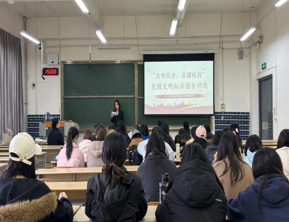 本次评选经过前期各宿舍自主申报、学院初步资格审查,共有7个宿舍进入答辩环节。各宿舍代表通过PPT展开现场陈述,围绕思想引领、安全文明、舍风建设、学风营造、文化特色等多个维度,全面展示了宿舍日常管理、特色活动及文明创建成果。