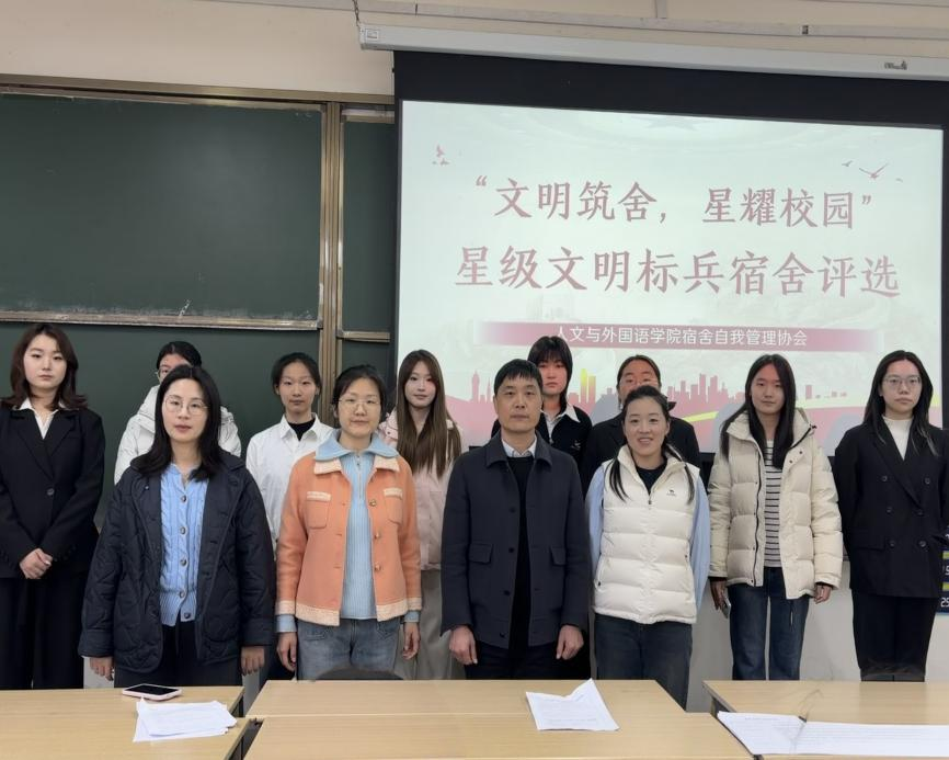 为深入推进“一站式”学生社区综合管理模式建设,营造文明和谐、积极向上的宿舍文化氛围,切实提升社区育人实效,3月25日,人文与外国语学院举办“文明筑舍,星耀校园”2025年度星级文明标兵宿舍答辩评选活动。学院党委副书记李军权,辅导员贾舒文、扎西央宗、李佳担任答辩评委。