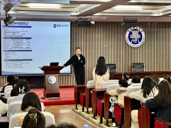 活动中,来自新北辰公考机构、易链供应链有限公司、新航道前程留学及金石教育有限公司的多位企业资深讲师受邀走进校园,为学子们带来了一场内容丰富、视角多元的职业发展分享会。各位讲师紧密结合当前就业形势与学院各专业特点,从不同行业视角出发,系统分析了就业市场的供需矛盾与用人单位的选拔标准,分享了简历优化、面试准备、职业规划等实用求职技巧,并通过一个个鲜活的案例展现了新兴领域的就业机遇。同时,讲师们一致强调夯实语言能力、跨文化沟通、数据分析等核心素养的重要性,特别指出注重实习经历积累、提升实践能力是增强求职竞争力的关键。此外,讲师们还引导学生明确职业定位、保持积极求职心态,鼓励大家拓宽职业视野,理性认知不同行业的发展趋势与人才需求,为未来的求职之路做好充分准备。
