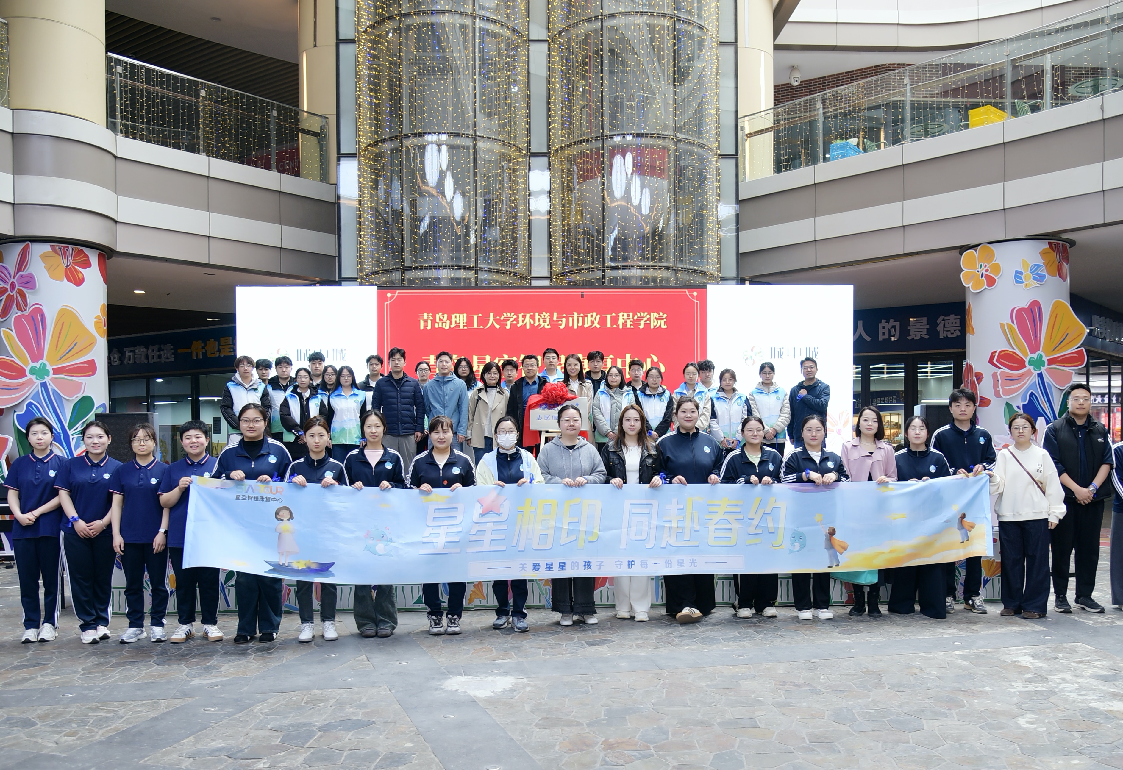在4.2世界孤独症关注日来临之际,青岛理工大学环境与市政工程学院师生代表走进星空智程心理康复中心,举行“星星相印,同赴春约”志愿服务基地揭牌仪式,并开展主题志愿服务活动,以实际行动为孤独症儿童搭建与社会沟通的桥梁。