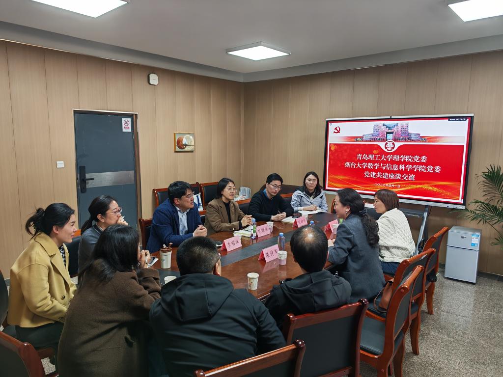 4月1日,烟台大学数学与信息科学学院党委书记张寅晗、院长陈传军、组织员赵立芹一行到理学院座谈交流,学院党委书记范晓光、党委副书记兼副院长历建刚、副院长李明珠及数学系教师代表参加座谈。双方围绕党建引领学科建设、人才培养、科研创新等方面展开深入讨论交流,切实推动党建与学科“一融双高”。