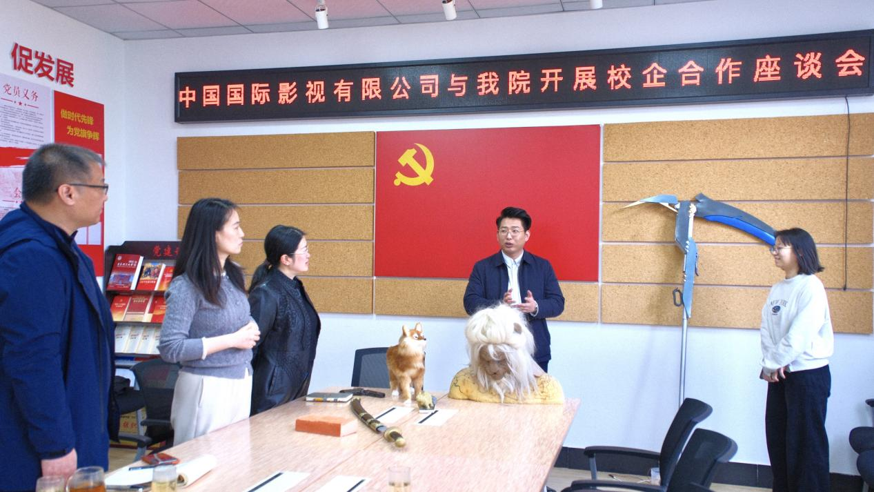 请进来:引企入校搭平台,协同育人拓新径。学院邀请中国国际影视有限公司总经理高鑫、技术总监宋博群一行到访艺术与设计学院,开展校企合作座谈会暨实习成果赠送仪式,学院党委书记吕楠,党委副书记、副院长张恬,副院长丁南,全体辅导员及大四学生代表共同出席。座谈会上,高鑫详细介绍公司情况与业务布局,重点解读影视实体特效行业的发展现状和未来前景,并现场展示各类实体特效成品,让在场师生直观感受行业前沿技术与发展趋势;吕楠围绕学院学科建设、人才培养模式展开介绍,明确学院人才培养方向与影视实体特效项目需求高度契合,为双方深化合作筑牢坚实基础。随后双方就校企合作方式、实习基地共建、就业岗位输送等核心内容深入交流,初步达成多项合作共识,为毕业生开辟了影视实体特效领域的就业新路径。活动最后,企业向学院赠送了2022级学生王朔的实习优秀成果,这既是王朔同学专业能力的生动体现,更是学院校企协同育人成效的具体彰显。