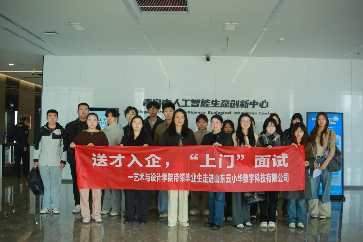 走出去:送才入企促对接,精准匹配促就业。学院乘势发力、主动作为,由党委书记吕楠带队,党委副书记、副院长张恬,就业辅导员张薇薇及15名大四毕业生走进山东云小华数字科技有限公司,开展“送才入企,‘上门’面试”专项活动,打破“企业坐等招人、学生被动求职”的壁垒,为毕业生与企业搭建“零距离”对接桥梁。活动中,企业工作人员带领师生参观公司数字展厅,重点演示数字人技术在教育领域、企业IP打造中的应用实践,帮助毕业生全面了解企业发展前景、岗位设置及用人需求,精准匹配职业发展预期。参观结束后,校企座谈会与现场面试同步开展,学院师生与企业代表围绕产教研融合、学生实习就业等方面深入交流,精准对接供需契合点;15名毕业生依次进行现场面试,展现出扎实的专业功底与良好的职业素养,企业负责人对学院学生的表现给予高度评价,部分学生与企业当场达成初步就业意向,真正实现了岗位与人才的精准匹配、高效对接。