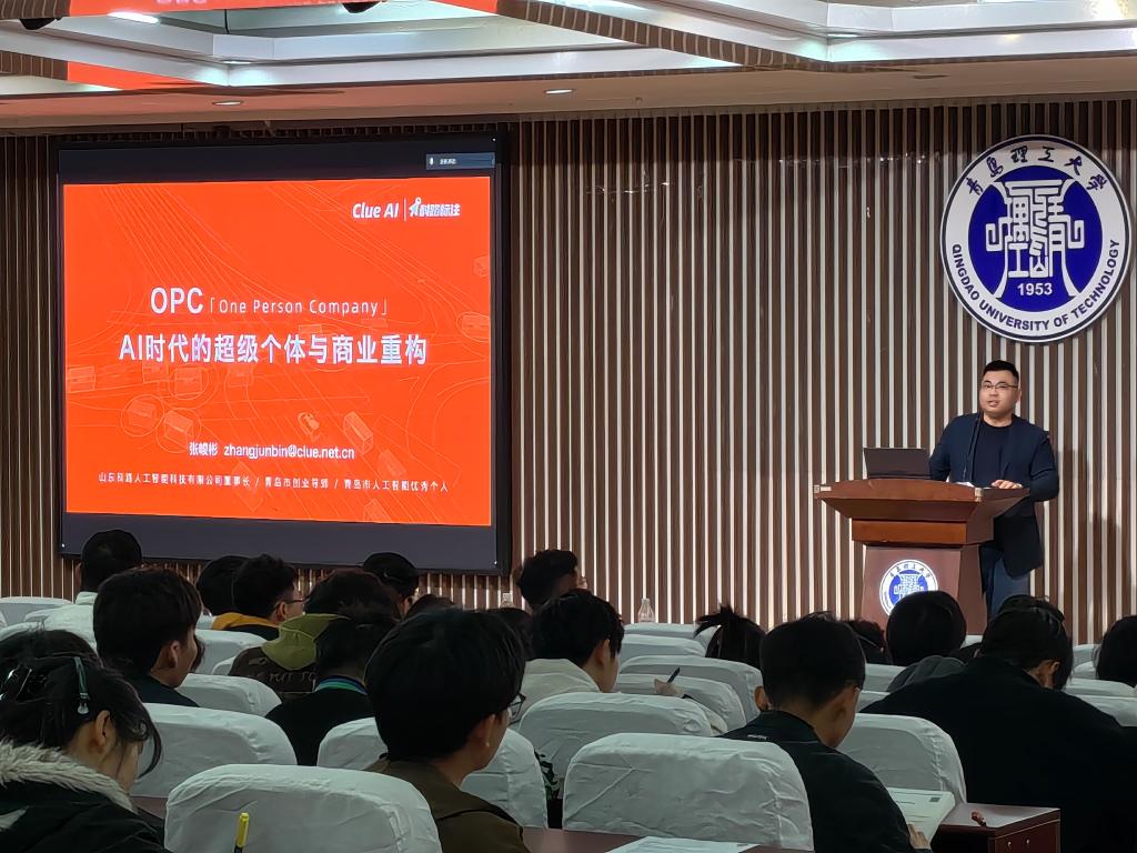 创业视野开拓,点燃创新热情。创业分享环节,张峻彬结合其跨领域企业管理经验及创业导师、大赛评委的专业视角,聚焦人工智能时代机遇,深度剖析OPC轻量化创业适配人群与优质赛道。他的分享紧贴技术前沿与市场动态,为有志于创新创业的学子打开了新思路,有效激发了青年的创业潜能与热情。