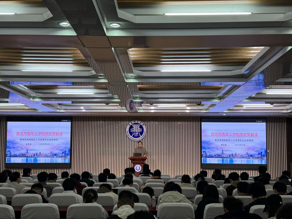 为积极响应并深入落实国家关于“就业公共服务进校园”的部署要求,进一步强化校地协同育人机制,精准赋能青年学生职业发展,4月10日,学校与青岛市西海岸新区人力资源和社会保障局携手,于黄岛校区成功举办“就业创业第一课”专题活动。本次活动由学校就业指导中心与新区人社局联合主办,机械与汽车工程学院承办,旨在通过政策、经验、指导的多维输送,助力学子明晰方向、提升能力。