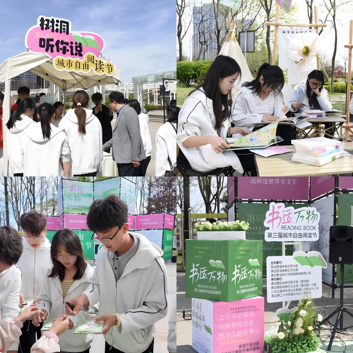 第31个“世界读书日”来临前,为响应国家全民阅读号召,深化校园文化建设,4月19日环境与市政工程学院联合青岛西海岸新区图书馆、青岛西海岸新区文化馆开展了“书适万物”城市自由阅读节活动。活动在西海岸新区东区市民广场举行,打破校园与城市的边界,融合学院专业特色与城市文化底蕴,吸引学校师生、周边社区居民及城市阅读爱好者共同参与,打造了一场沉浸式、多元化的阅读盛宴,让书香浸润校园与城市的每一个角落。