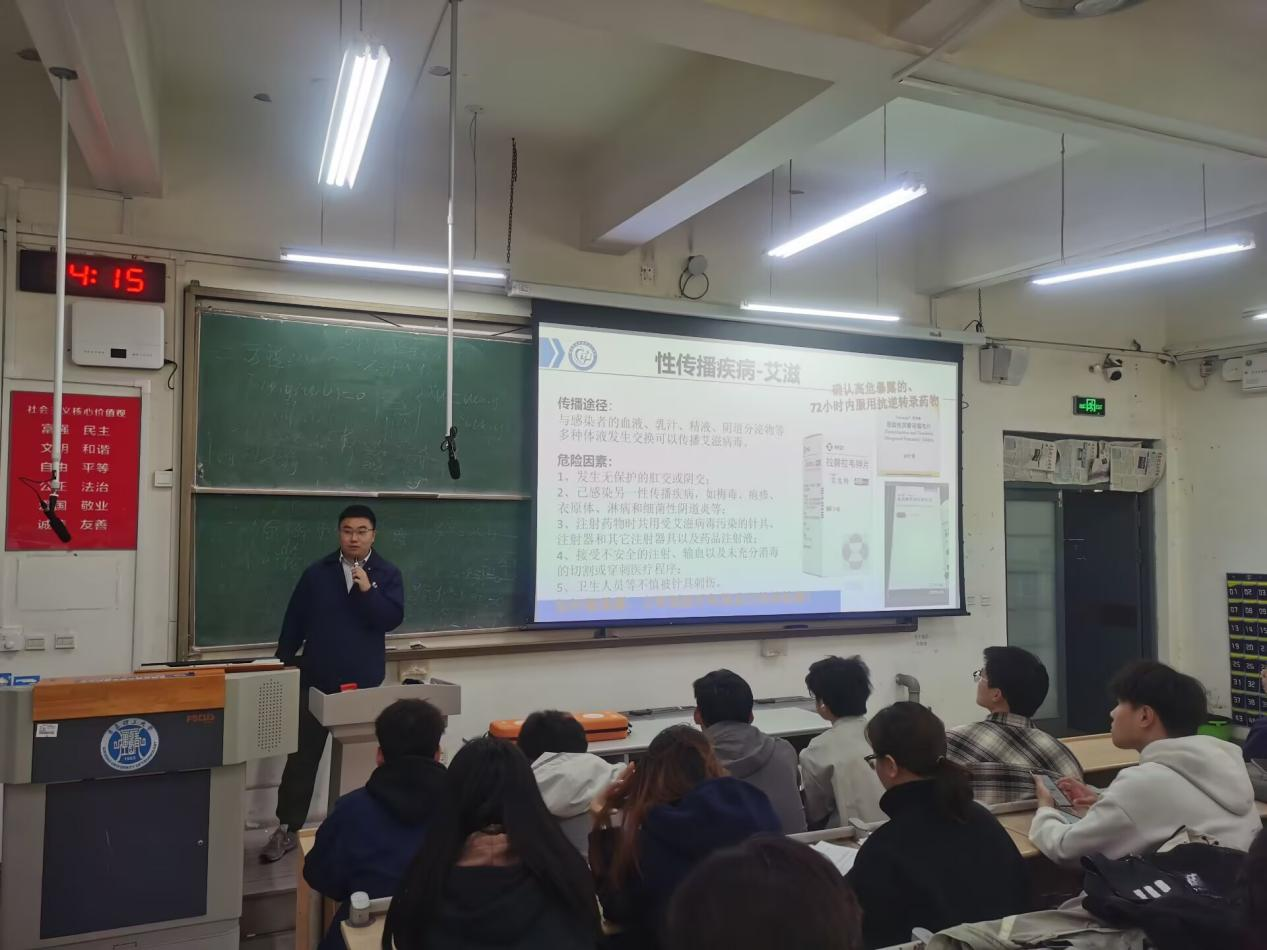 培训在主教学楼教室正式开始。首先由西海岸新区中心医院院感科主治医师郭柯君主讲,围绕常见传染病防控与规范手卫生展开教学,系统讲解传染病传播途径、核心防控措施,重点示范七步洗手法标准流程,帮助同学们掌握科学防护方法。