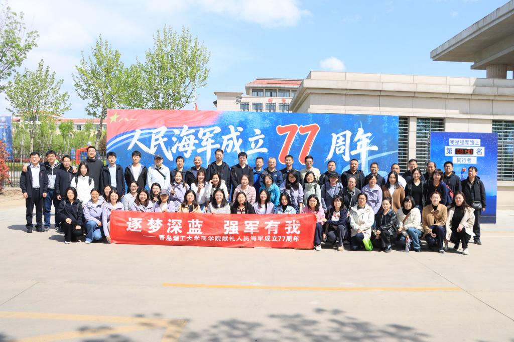 为庆祝中国人民解放军海军成立77周年,深入贯彻习近平强军思想,推动国防教育与高校思政工作深度融合,4月21日至22日,商学院联合学校学生工作处(武装部)以一场“行走的国防思政课”,向人民海军深情献礼。师生代表先后走进青岛港三号码头与驻青某部队营区,登战舰、观军容、学技能、砺初心,在深蓝航迹与迷彩方阵的交融中,打造一堂直抵人心的国防教育思政大课。