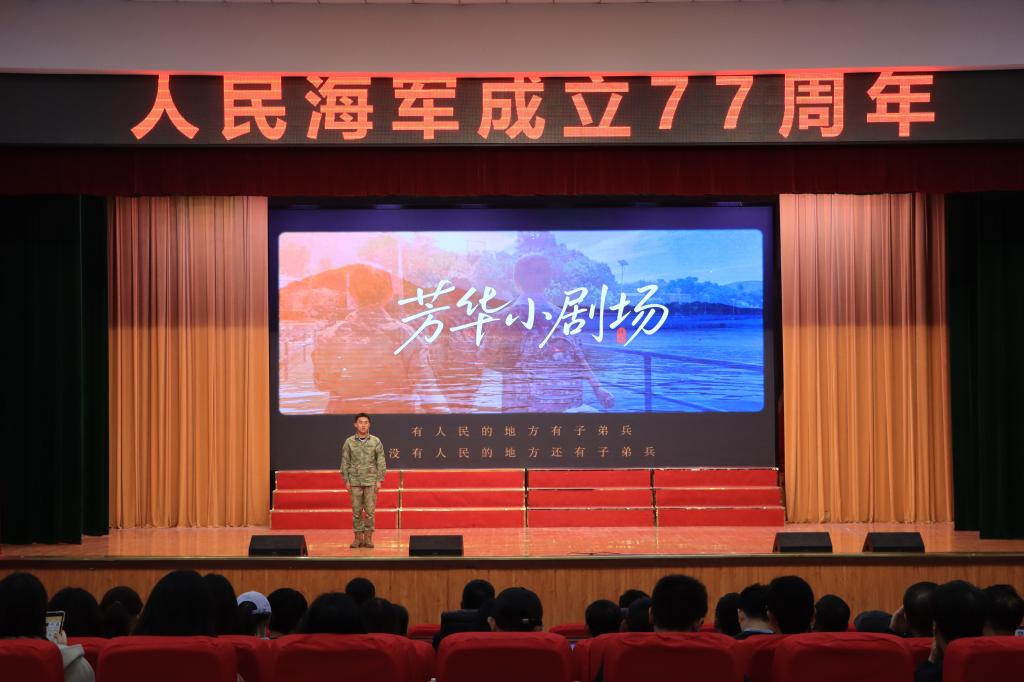 随后,在部队文化训练中心,“战地芳华”宣讲团用鲜活的情景剧《红铁》为师生党员上了一堂生动的国防教育课,在场师生无不被人民海军77载砥砺奋进的精神力量所感染。