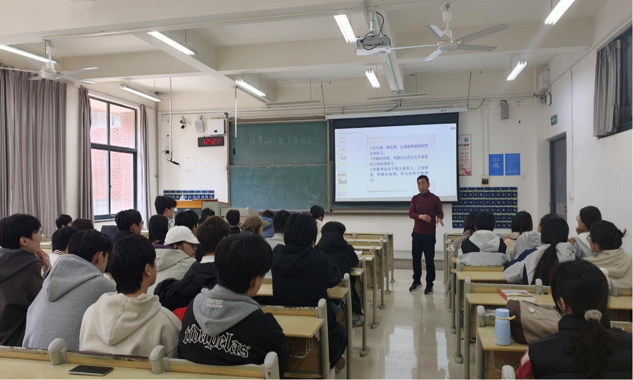 动员大会现场,学院党委书记王龙围绕体质健康测试的重要意义、组织要求和备测重点进行系统部署。他指出,体质健康测试是促进学生全面发展的重要抓手,是检验体育育人成效的重要载体,全体学生要提高思想认识,科学备测、规范训练,以良好状态迎接测试。学院将以此次体测为契机,持续强化体育育人导向,推动形成常态化体育锻炼机制。